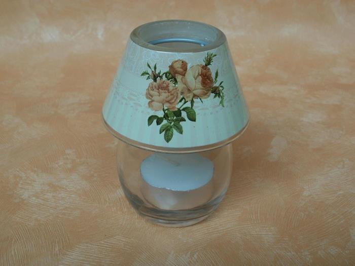 Eine wunderschöne kleine ca. 9 cm hohe und Glas-Lampe für ein Teelicht mit einem tollen Rosen Dekor auf dem Lampenschirm.